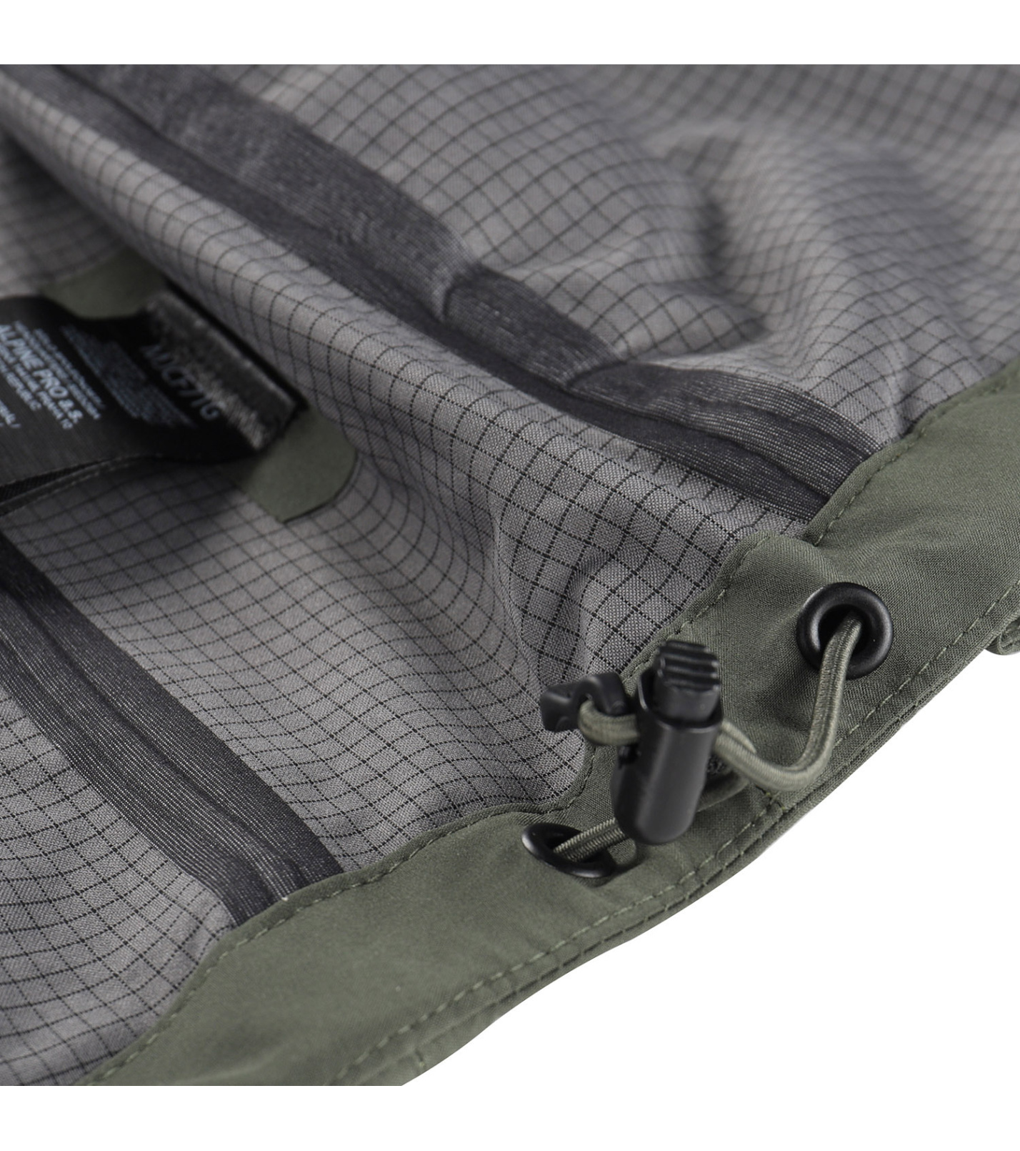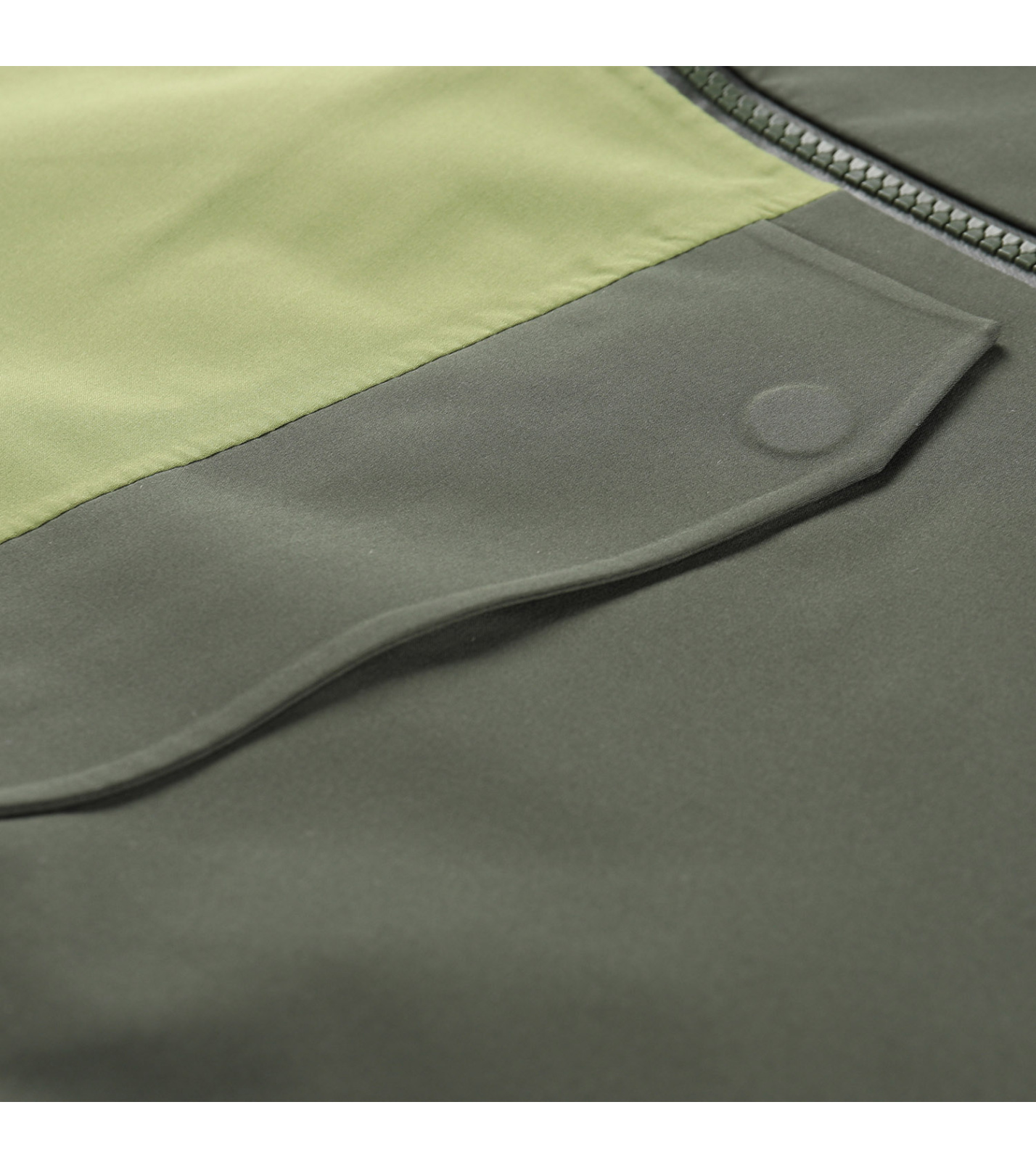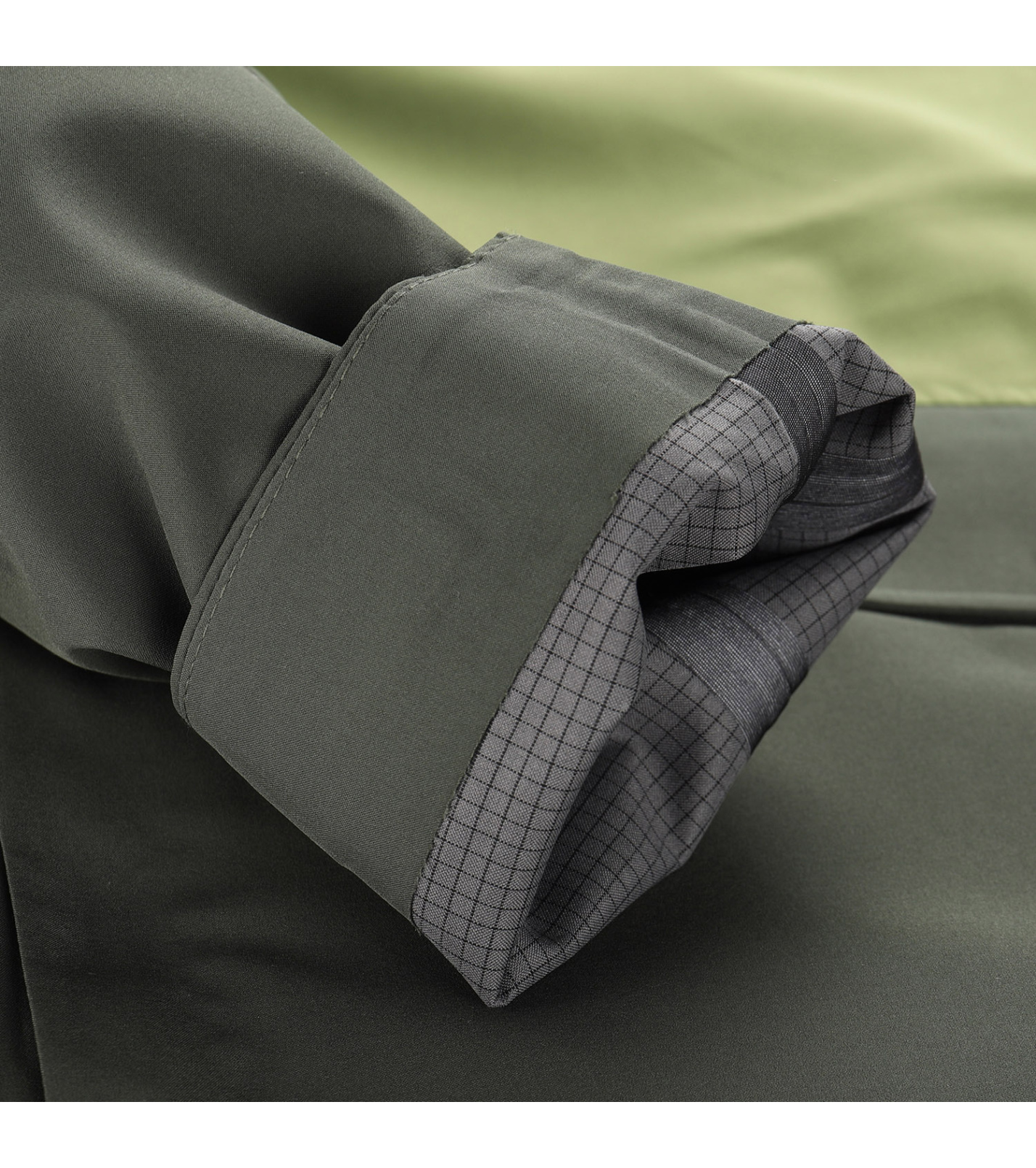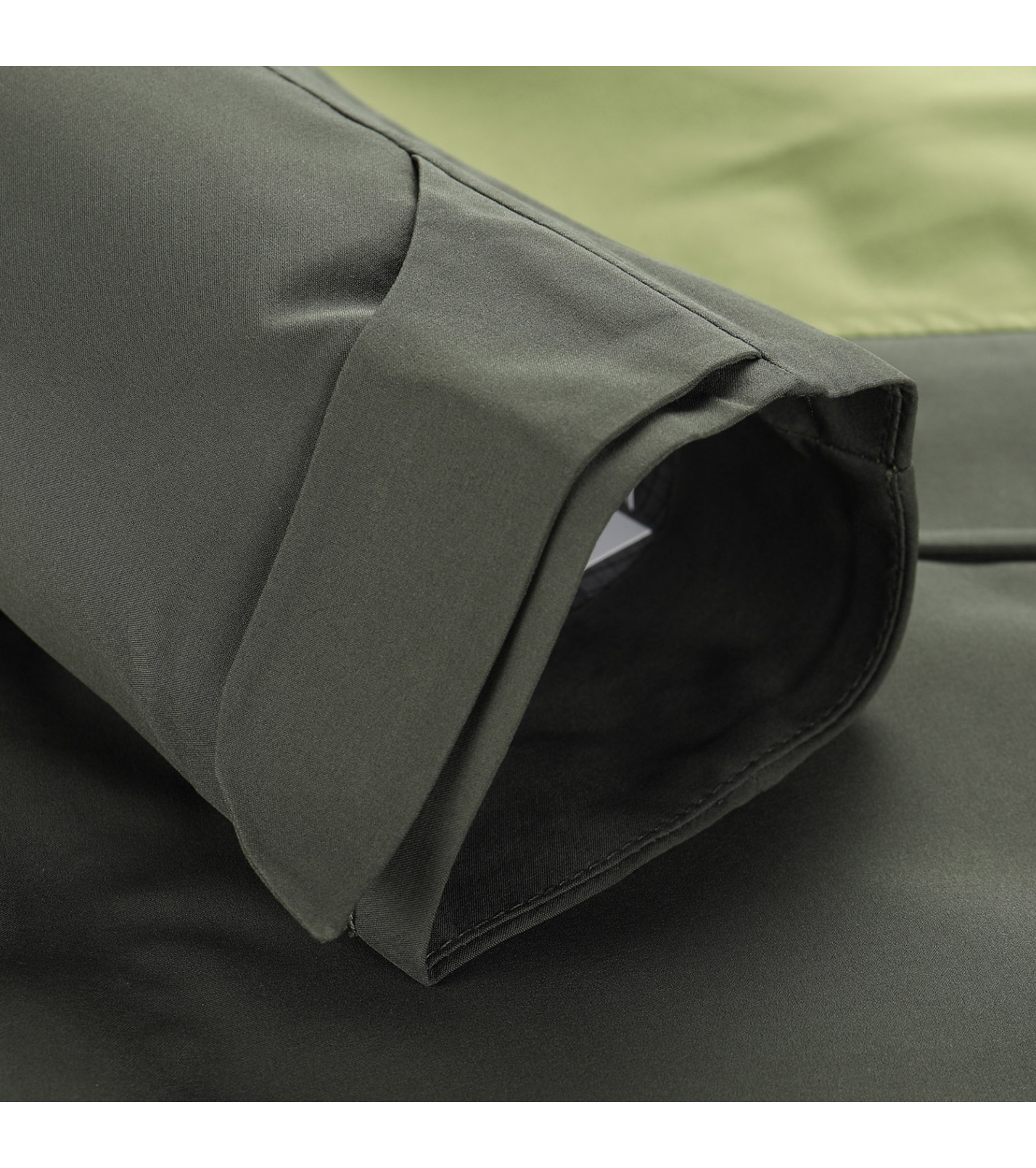 Bunda má anatomicky tvarovaný polopriliehavý strih s podlepenými švami, ktoré zabraňujú prenikaniu vlhkosti a chladu. Neodopínateľná kapucňa so sťahovaním a mäkká krytka pri brade poskytujú ďalšiu ochranu proti nepriazni počasia. Vodeodolný hlavný zips spolu s odvetrávaním v podpazuší zaisťujú účinnú reguláciu teploty aj pri intenzívnom pohybe. Pre väčší komfort sú rukávy opatrené sťahovaním na suchý zips a elastickou manžetou, zatiaľ čo spodný lem je vzadu predĺžený a nastaviteľný pomocou gumičky.