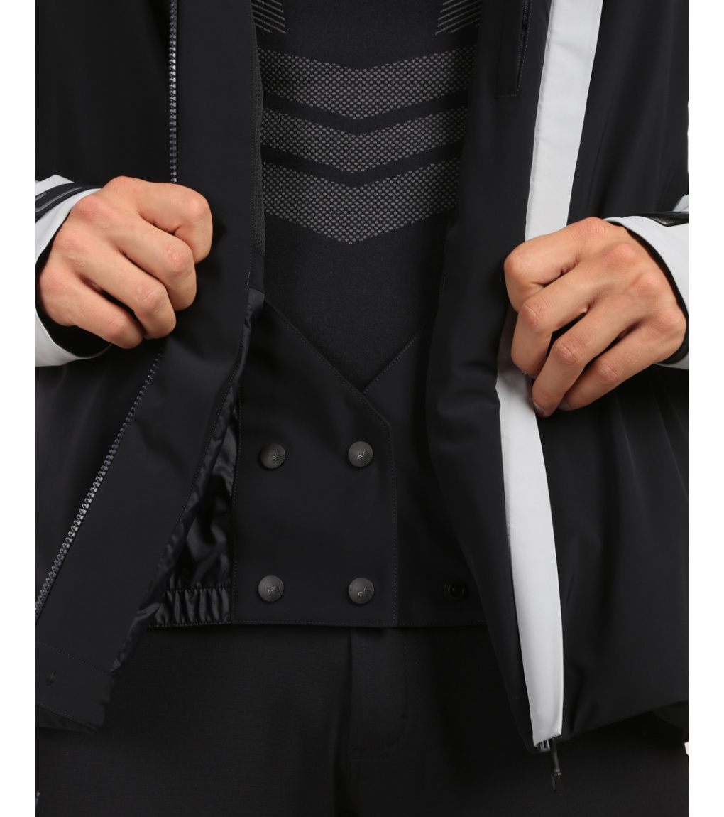 Pánska lyžiarska bunda Kilpi HYDER-M predstavuje to najlepšie v ponuke pánskych búnd od Kilpi. Základom je značkový membránový materiál DERMIZAX, vysoko vodeodolný a priedušný. V kombinácii s podlepenými švami je zárukou sucha a pohodlia v akýchkoľvek podmienkach. Vlastné teplo pomáha udržovať kombinácie vnútornej elastickej podšívky, štruktúrovanej zóny a syntetická výplň PRIMALOFT. Hlavné vrecká, náprsné vrecká a rukávové vrecko na skipass s vodeodolnými zipsami YKK, sú istotou dlhej životnosti a funkčnosti. Medzi ďalšie výhody tejto bundy patria ventilačné zipsy v podpažiach, priestranná, odnímateľná kapucňa s trojbodovým sťahovaním a spevneným šiltom a protisnehový golier. Lemy rukávov sa dajú stiahnuť suchým zipsom. Vnútorné sieťové vrecko obsahuje navyše handričku na čistenie okuliarov. Bunda má integrovaný prvok RECCO, ktorý zvyšuje vašu šancu nájdenia pri nehode. Prepracované kontrastné detaily s laserom rezanými a vyrazenými prvkami robia bundu Kilpi HYDER-M neprehliadnuteľnú. Odporúčame do kombinácie nohavice Kilpi LEGEND-M, ktoré nájdete v ponuke pánskych lyžiarskych nohavíc.