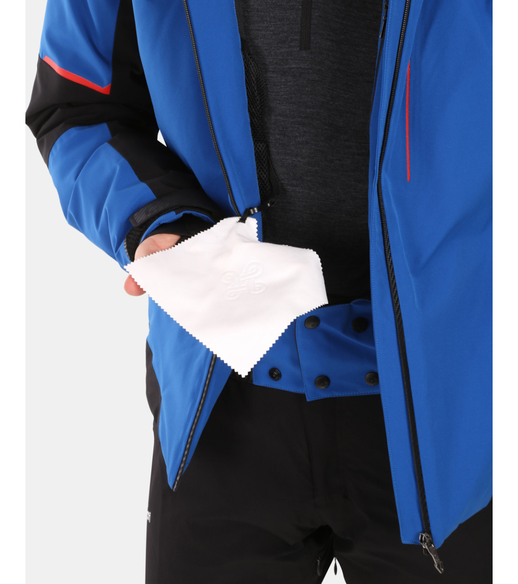Plne podlepené švy a vodeodolné zipsy zaisťujú dokonalú ochranu proti prenikaniu vlhkosti, zatiaľ čo dlhé ventilačné zipsy v podpazuší umožňujú odvetrávanie pri intenzívnej aktivite alebo teplejšom počasí. Praktické vrecká, vrátane rukávového vrecka na skipass, vnútorné zipsové vrecká a sieťové vrecká s handričkou na okuliare, poskytujú dostatok priestoru pre vaše nevyhnutnosti. Odnímateľná kapucňa so spevneným šiltom, protisnehový golier, rukávové manžety a sťahovanie spodného lemu suchým zipsom zaisťujú maximálny komfort a ochranu. Bezpečnosť zvyšuje integrovaný prvok RECCO, ktorý zlepšuje šance na nájdenie v prípade nehody v teréne.