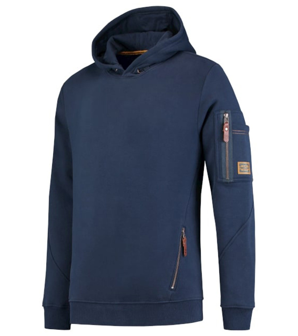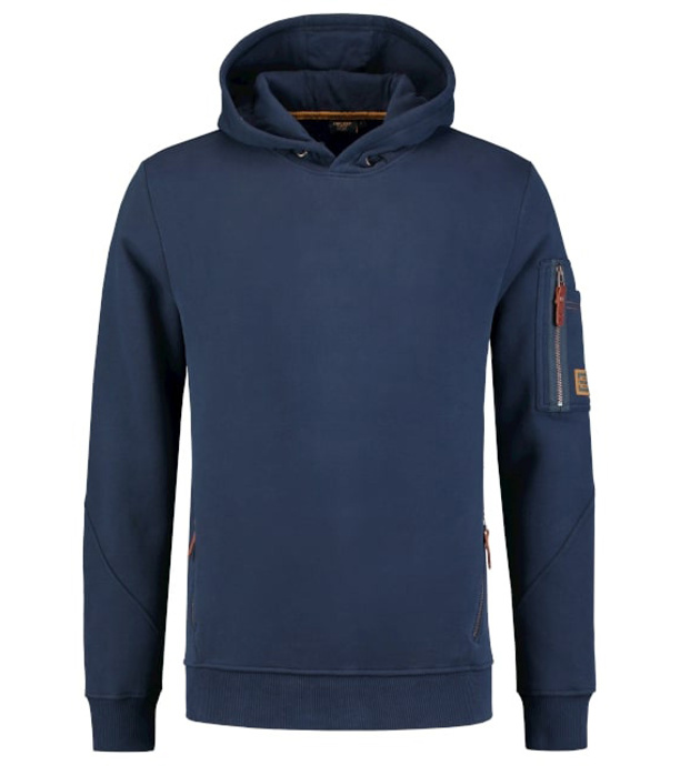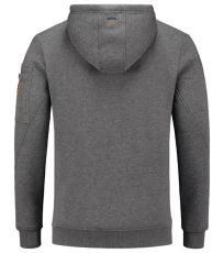 Panská mikina rovného strihu s bočnými švami. Kapucňa s podšívkou a bočné vrecká na zips. Mikina má ešte jedno vrecko na zips na rukáve. Spodný lem a manžety rukávov majú rebrovaný úplet. Vnútorná strana mikiny je počesaná.