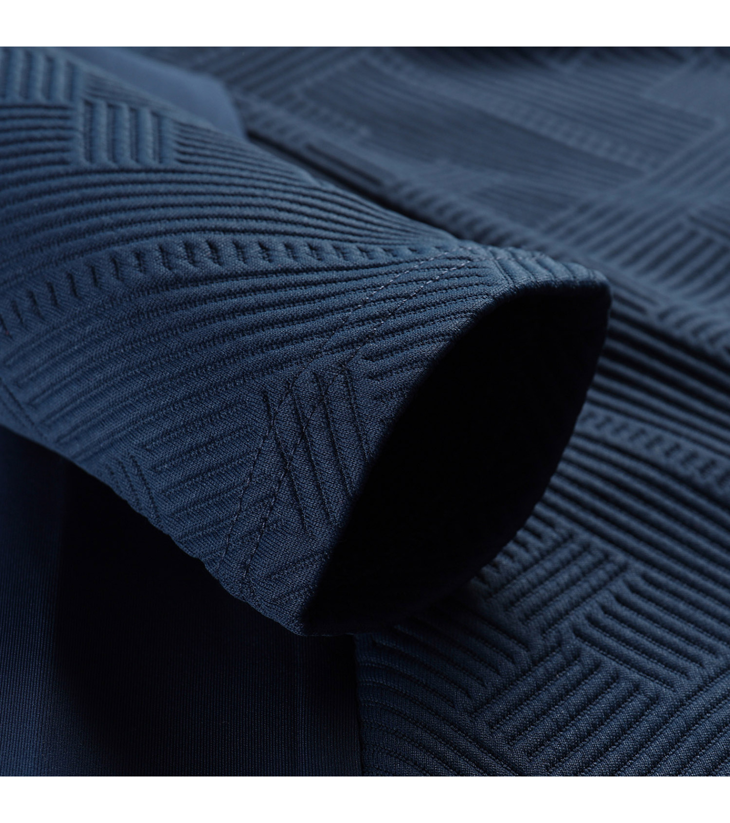 Strih je polopriliehavý, takže dobre sedí na postave, ale zároveň neobmedzuje v pohybe. Praktické dlhé zapínanie na kontrastný zips je doplnené krytkou pri brade, ktorá zabraňuje nepríjemnému odieraniu pokožky.