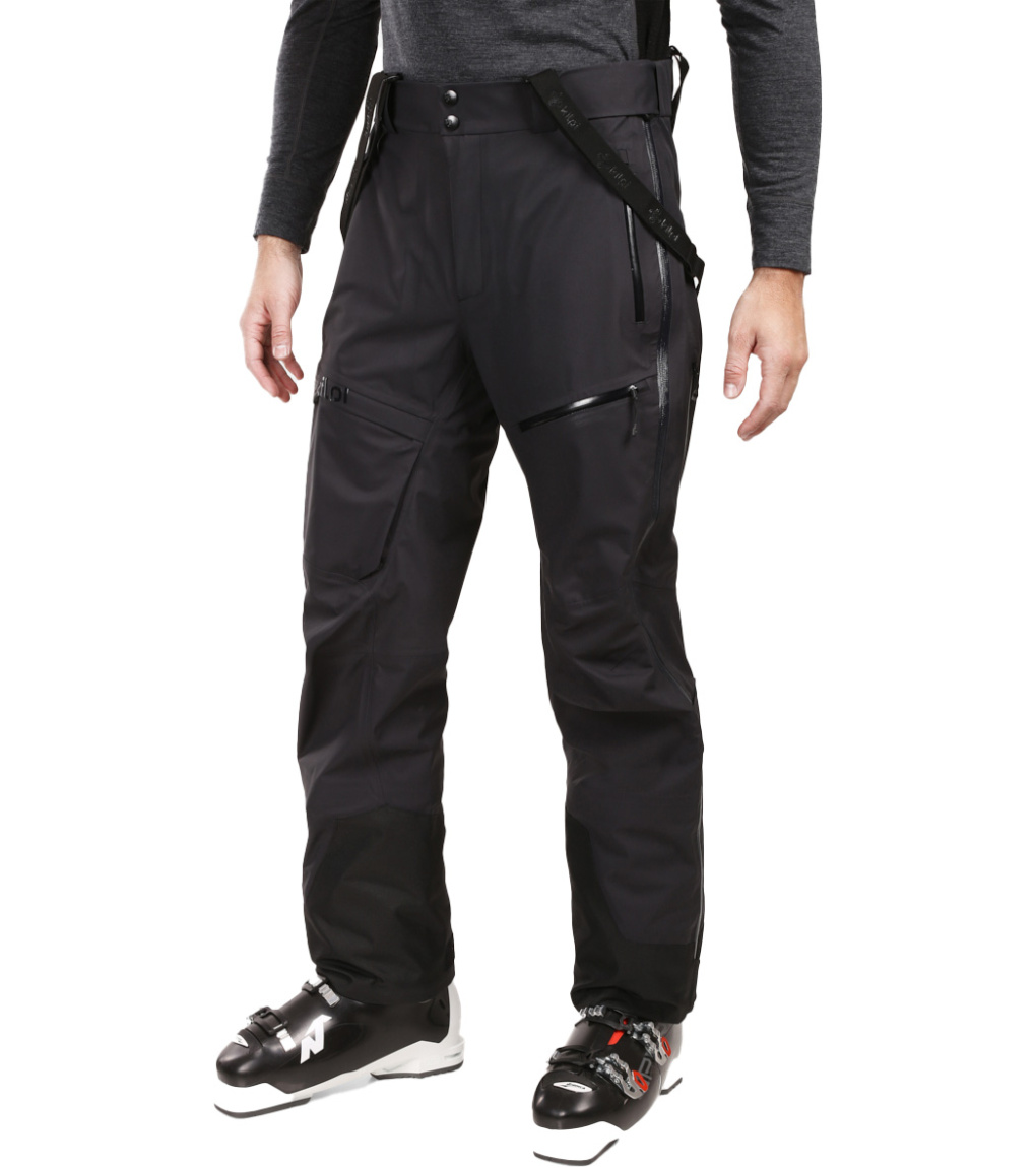 Praktické celorozopínacie zipsy po stranách umožňujú veľmi jednoduché obliekanie aj vyzliekanie, a to aj cez lyžiarske topánky. Vnútorné protisnehové manžety a zosilnené spodné časti nohavíc chránia pred snehom a oderom, zatiaľ čo ventilačné zipsy zaisťujú potrebné odvetrávanie pri intenzívnom pohybe. Nohavice sú vybavené štyrmi zipsovými vreckami s vodeodolnými zipsami YKK a elastickými nastaviteľnými trakmi pre maximálne pohodlie