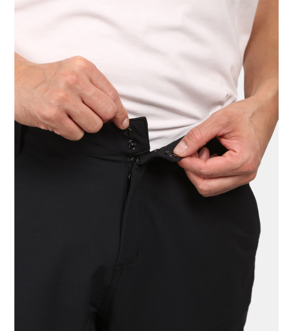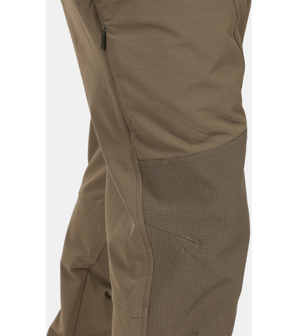 Praktické detaily, ako je klasické zapínanie na kovové cvoky, elastický pás či bočné ventilačné otvory, robia z týchto nohavíc skvelý kúsok na celodenné nosenie. Pre uloženie výbavy poslúži dve klasické vrecká a jedno zipsové vrecko na stehne. Spodný lem nohavíc je možné ľahko prispôsobiť pomocou kovových cvokov, nechýba ani háčik na uchytenie k šnúrkam topánok. Na kolenách a vnútornej strane nohavíc je materiál zosilnený, aby vydržal aj náročnejšie podmienky.