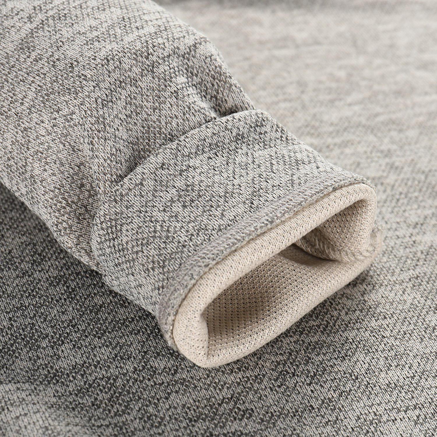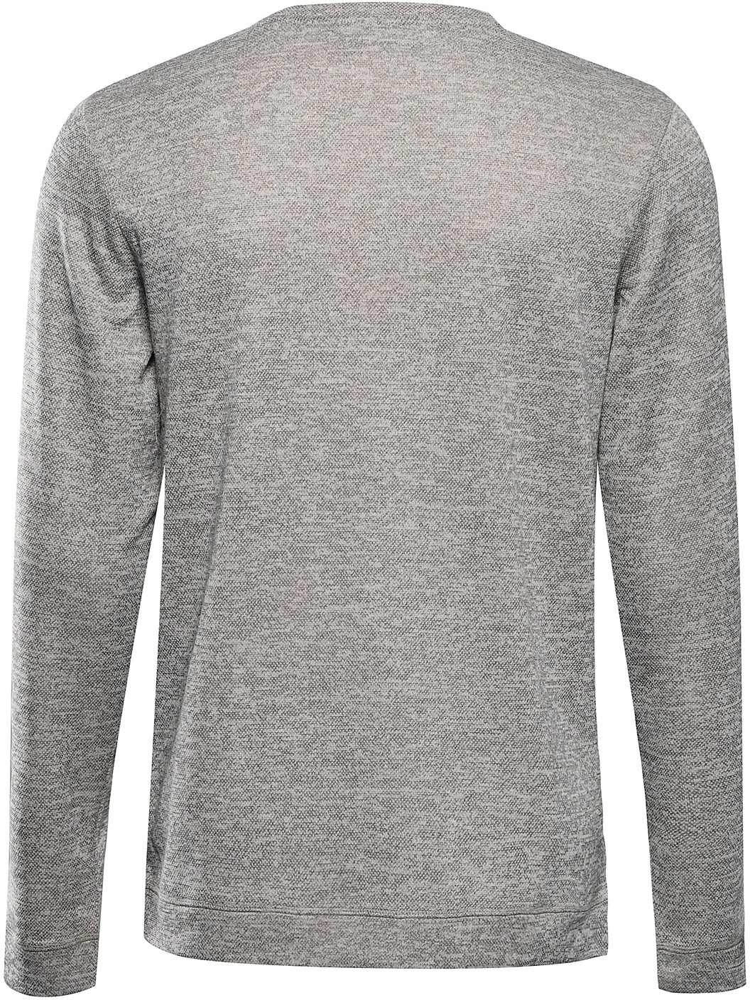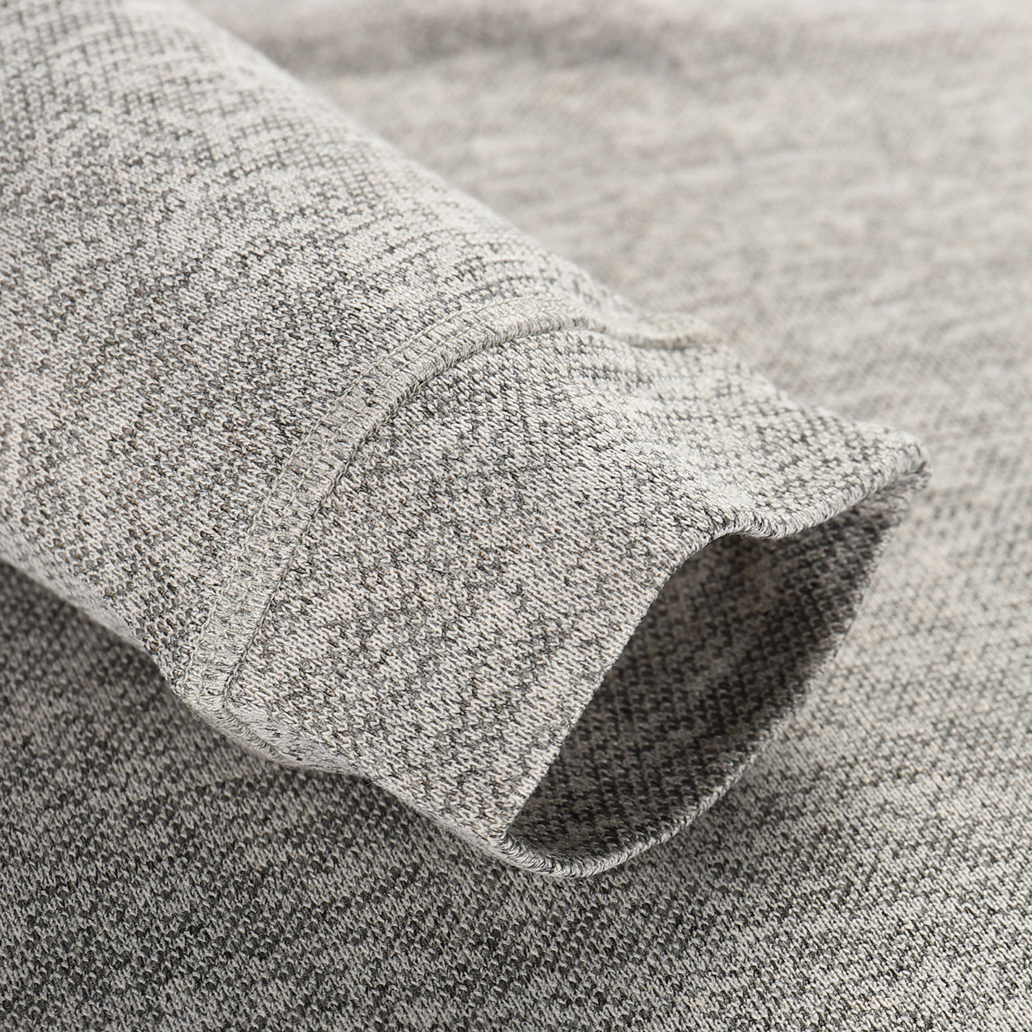 Pánske tričko s dlhým rukávom je vyrobené zo 100% polyesteru, ktorý je ľahký, príjemný na nosenie a zároveň nenáročný na údržbu. Melírovaný materiál dodáva tričku moderný a športový vzhľad, ktorý ľahko zladíte ako s džínsami, tak aj s voľnočasovými nohavicami. Polopriliehavý strih zvýrazňuje postavu, ale zároveň poskytuje dostatok pohodlia pri pohybe.