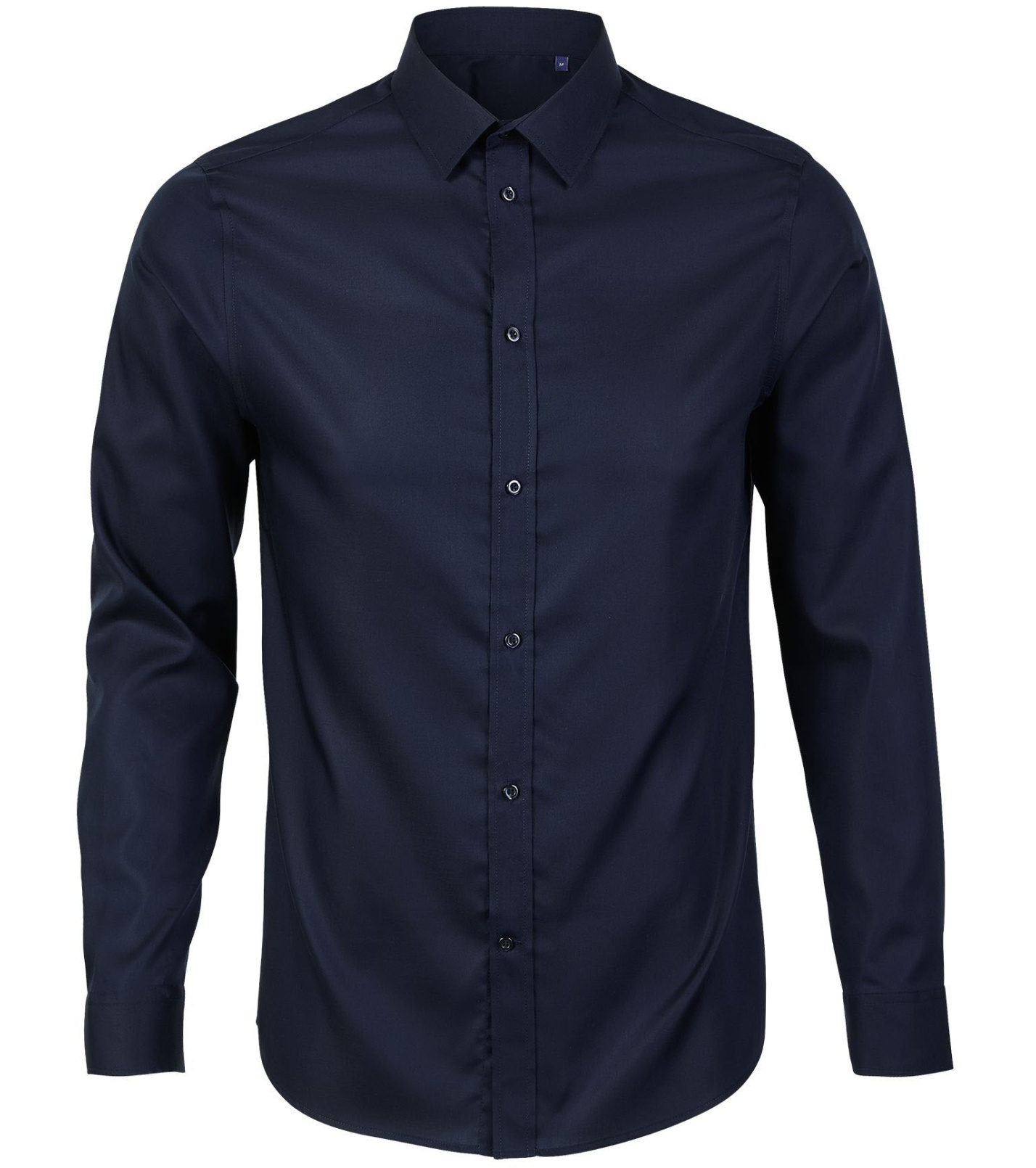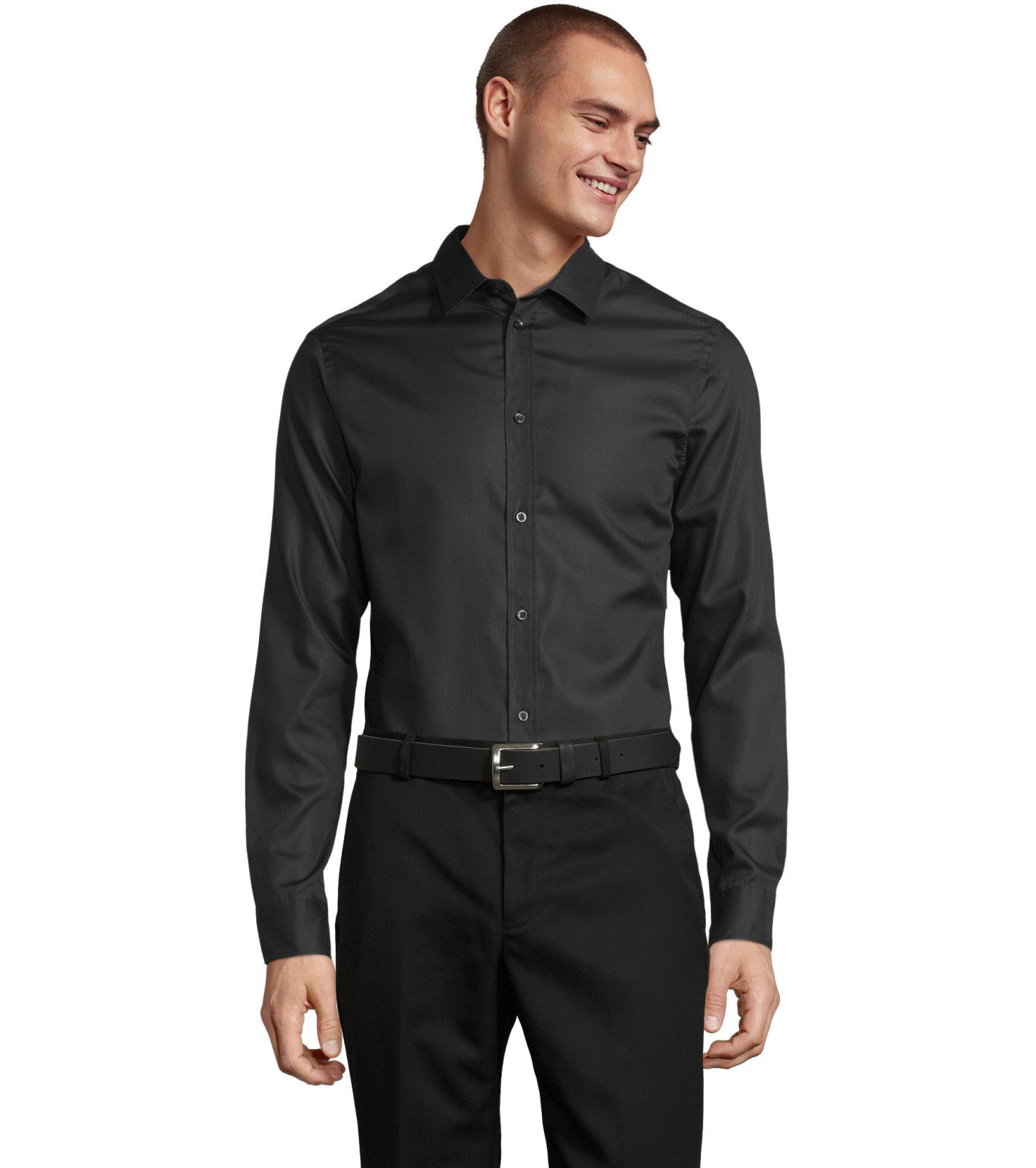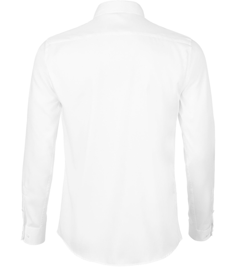 Pánska košeľa s dlhým rukávom a talianskym golierom. Zapínanie na gombíky. Rukávy sú zakončené nastaviteľnými okrúhlymi manžetami s 2 gombíkmi a viazaným rázporkom. Vyrábaná technológiou na úpravu bez žehlenia.