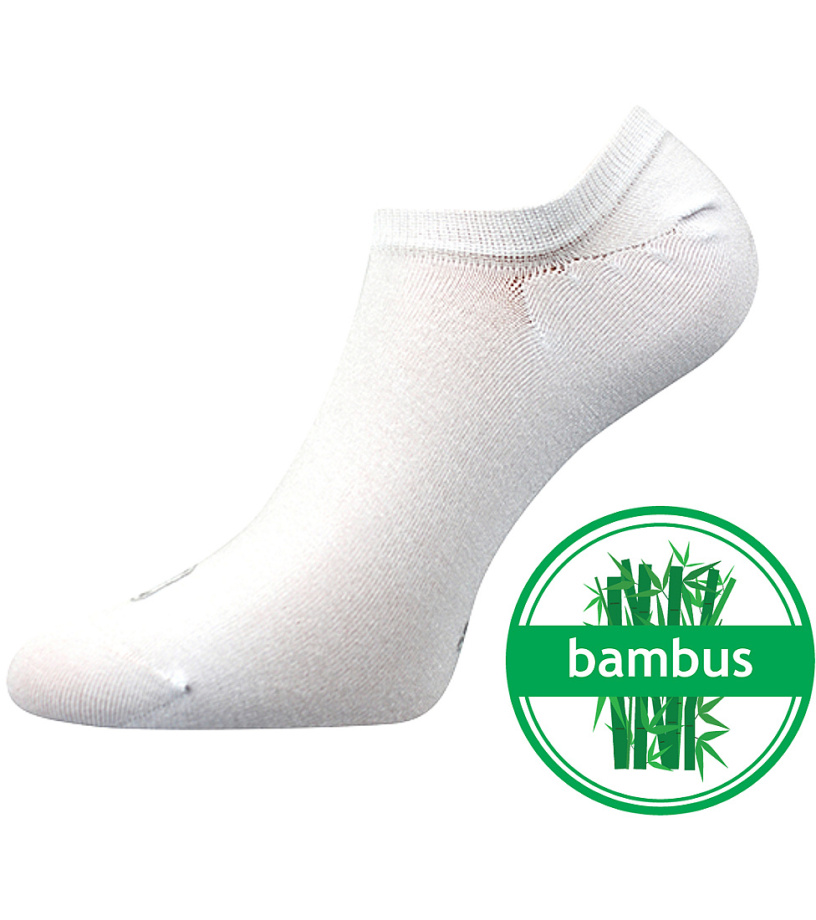 Unisex extra krátke ponožky, reťazová špička, veľmi jemný 200-ihlový úplet, extra tvarovanie päty, ktoré zabraňuje zošmyknutiu ponožky, jemná spona na leme, bambusový materiál s prirodzenou antibakteriálnou ochranou.