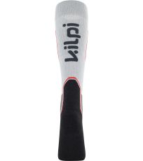 Športové ponožky Kilpi RACER-U sú vyrobené z ľahkého, priedušného úpletu zo zmesi merino vlny a syntetických vlákien. Táto kombinácia materiálov je vhodná na vysoko intenzívne športy, ako je lyžovanie alebo skialpinizmus. Rôzne typy úpletov sú usporiadané podľa funkčných zón na dosiahnutie maximálneho pohodlia. Prirodzenou vlastnosťou merino vlny je, že dokáže neutralizovať pot, a tým eliminovať nepríjemný zápach a prirodzene odpudzuje nečistoty. Polyamidové vlákna zvyšujú pevnosť ponožky v ťahu a odolnosť proti oderu. Podiel elastanu zaručuje dostatočnú pružnosť ponožiek. Zosilnená holenná zóna eliminuje pľuzgiere z lyžiarskych topánok, plyšová oblasť päty a prstov je odolná proti oderu, štruktúrovaná priedušná zóna okolo nártu pomáha odvádzať vlhkosť. Horný lem ponožky je dostatočne pružný, široký a netlačí. Ponožky Kilpi RACER-U sú k dispozícii v dvoch športových farbách.