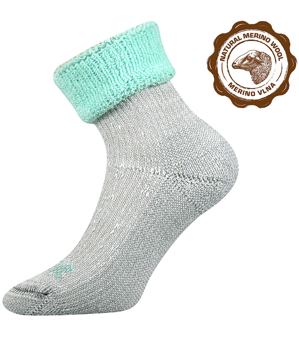 Dámske froté ponožky s farebným lemom, merino vlna.
