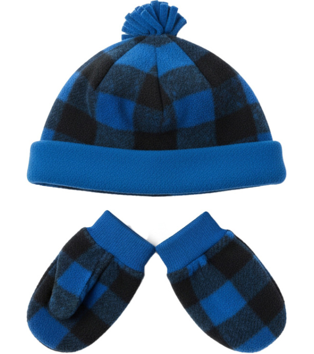 Detská sada obsahuje čiapku a palčiaky s kockovaným vzorom. Čiapka s ozdobným strapcom a vyhrnutým lemom príjemne hreje a skvele padne. Palčiaky s pružnými manžetami dobre držia na rukách a chránia pred zimou. Ideálne pre chladné dni aj zimné radovánky vonku.