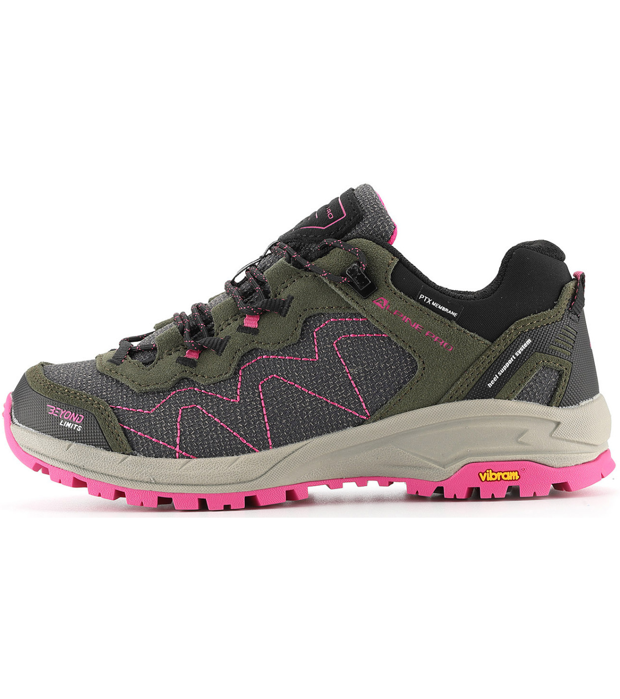 Ľahká a pružná medzipodrážka z EVA materiálu tlmí nárazy a prispieva k celodennému pohodliu, zatiaľ čo odolná gumová podrážka Vibram poskytuje vynikajúcu priľnavosť a stabilitu v rôznorodom teréne. Obuv je vybavená vodeodolnou membránou PTX, ktorá spoľahlivo chráni proti vlhkosti a zároveň zachováva priedušnosť. Dodatočné HSS vystuženie pätnej časti zaisťuje lepšiu fixáciu chodidla a predlžuje životnosť obuvi.