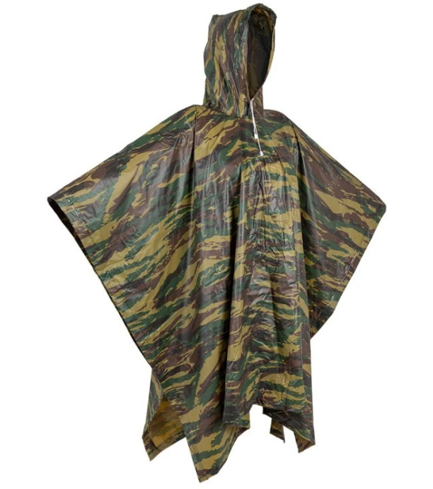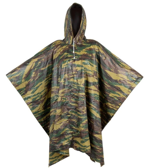 Ľahké pončo s maskovacím vzorom, kapucňou a sťahovaním okolo krku. Rozopínacie boky, vďaka ktorým je možné pončo jednoducho pretiahnuť cez hlavu. Pod pončo je možné schovať aj malý batoh. 100% nepremokavý materiál, elektronicky zvárané švy. Univerzálna veľkosť.