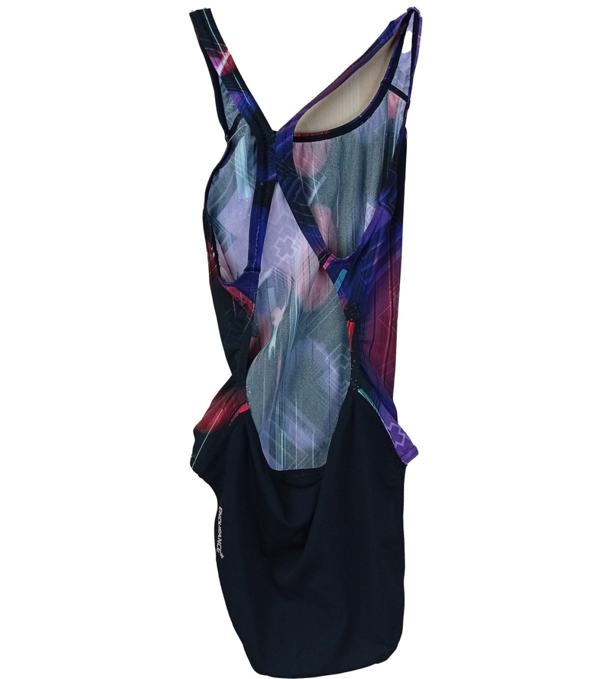 Dámske športové jednodielne plavky s moderným abstraktným vzorom v kombinácii tmavých a výrazných farieb. Úzke ramienka do kríža zaisťujú dobrú oporu a voľnosť pohybu, takže sú ideálne pre plávanie aj tréning. Ergonomický strih sa prispôsobí postave a poskytuje pohodlie pri nosení. Odolný materiál je vhodný na časté používanie v bazéne, rýchlo schne a dlhodobo si zachováva tvar i farby. Skvelá voľba pre aktívne plavkyne, ktoré hľadajú funkčnosť aj štýl.