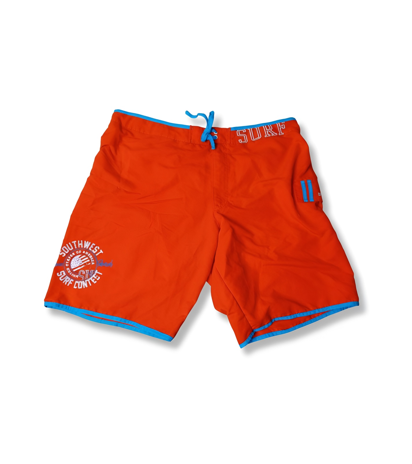 Pánske plavky v žiarivo farbe s detailmi zaujmú moderným športovým dizajnom. Pohodlný strih s nastaviteľnou šnúrkou v páse zaisťuje perfektné prispôsobenie, zatiaľ čo ľahký a rýchloschnúci materiál je ideálny pre pláž aj bazén. Štýlové potlače „Surf“ a „Southwest Surf Contest“ dodávajú plavkám výrazný letný charakter. Perfektná voľba pre aktívnych mužov, ktorí chcú vyniknúť.